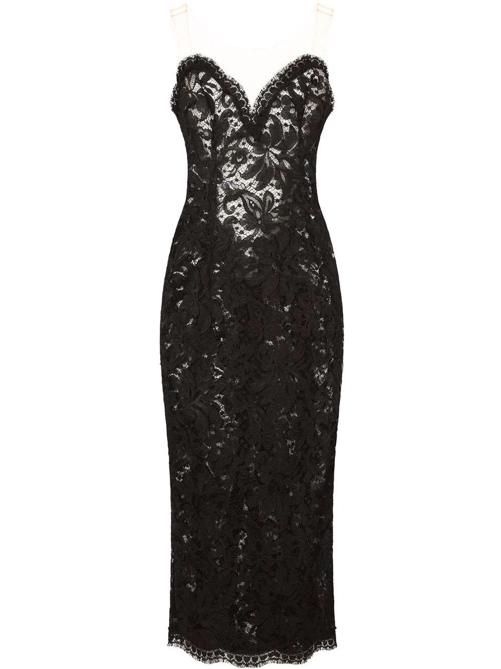sleeveless tulle midi dress The Italian house Dolce & Gabbana is known for presenting elegant and ethereal pieces with each new season. This midi dress encapsulates the house's eye for detail, from the sheer lace construction to the gentle sweetheart neckline. Highlights - Black - Sweetheart neck - Panelled bodice - Lace panelling - Fitted waistline - Thigh-length Made in Italy Composition Outer: Rayon 70%, Nylon 30% SIZE & FIT Measurement HIPS 31.49 in(80 cm) Shoulder Width 12.99 in(33 cm) LENGTH 47.63 in(121 cm) WAIST 24.4 in(62 cm)
