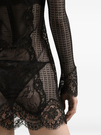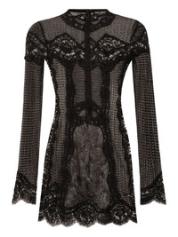 lace-panel long-sleeve mini dress Highlights - Black - Long sleeves - Lace panels - Round neck - Scalloped hem Made in Italy Composition Viscose 70%, Cotton 20%, Polyamide 10% Washing instructions Read Manufacturer Guidelines