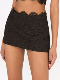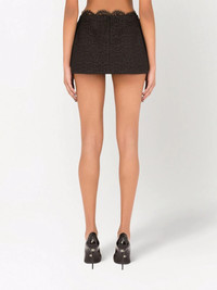 lace-trim jacquard miniskirt Inspired by late '90s style, Dolce & Gabbana adds a minimalist twist to the brand's signature bold opulence in the SS22 collection. This approach is showcased on this mini skirt which is constructed from lace material in a refined tonal colourway. Highlights - Black - Wool - Tonal design - Lace panelling - Patterned jacquard - Rear zip fastening Made in Italy Composition Outer: Acrylic 33%, Wool 33%, Acetate 14%, Silk 13%, Nylon 7% Lining: Polyester 97%, Elastane 3%