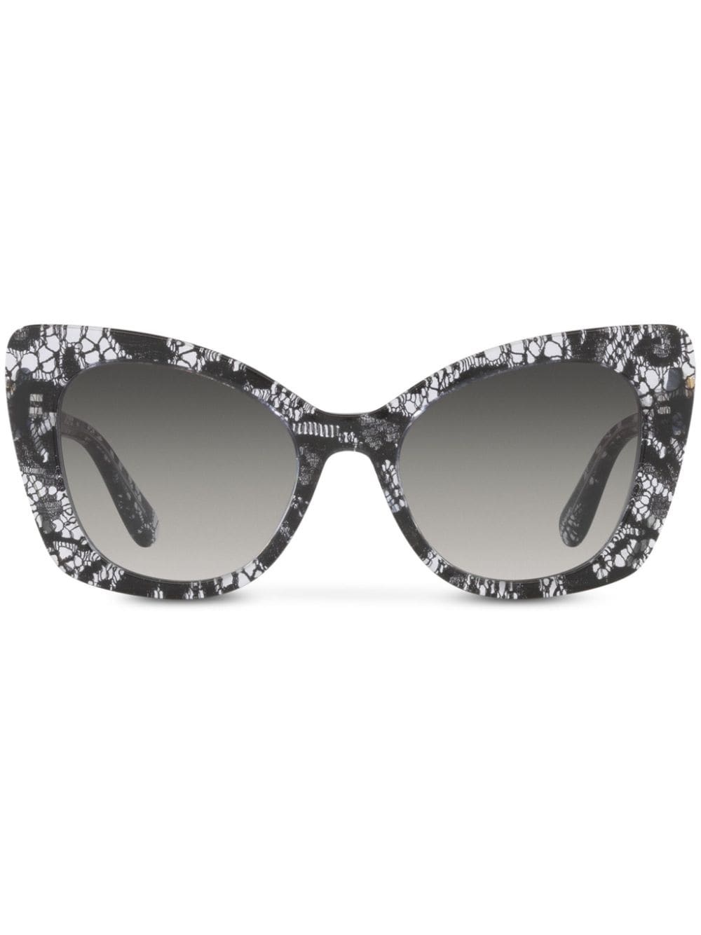 lace-print cat-eye frame sunglasses Highlights - Black - Acetate - Gold-tone hardware - Lace print - Logo-embossed arm - Cat-eye frame - Gradient lenses - Uv-protective lenses - Oversize arms - Curved tips - These glasses come with a protective case. Made in Italy Composition Acetate 100% SIZE & FIT Measurement Arm Length 5.51 in(14 cm) Bridge Width 0.78 in(2 cm) Lens Diameter 2.08 in(5.3 cm) WIDTH 5.51 in(14 cm)
