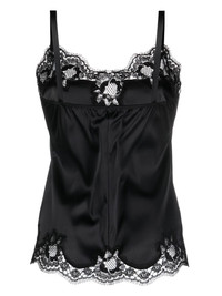 lace-trim satin camisole top Highlights - Heritage tulle and lace have become an intrinsic part of dolce & gabbana's exuberantly romantic, feminine collections. this black lace trim camisole is crafted from a silk-cotton blend and features spaghetti straps, a scalloped lace hem and a relaxed fit. underwear and lingerie must be tried on over your own garments. Made in Italy Composition Silk 80%, Cotton 12%, Spandex/Elastane 5%, Polyamide 3%