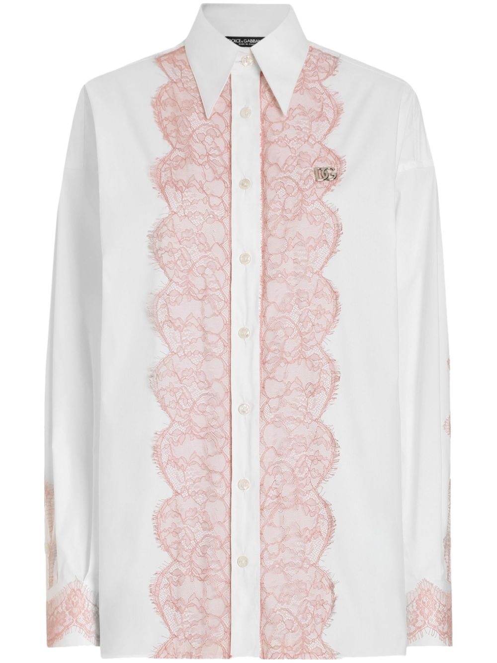 DNA lace-trimmed shirt Highlights - White - Front button fastening - Buttoned cuffs - Logo plaque Made in Italy Composition Cotton 80%, Polyamide 15%, Viscose 5%