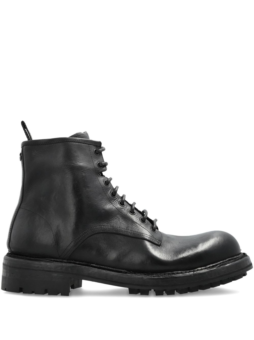 lace-up leather boots Highlights - Black - Leather upper - Pull-tab at the rear - Front lace-up fastening - Round toe - Ridged rubber sole Made in Italy Composition Outer: Calf Leather 100% Sole: Rubber 100% Lining: Calf Leather 100%
