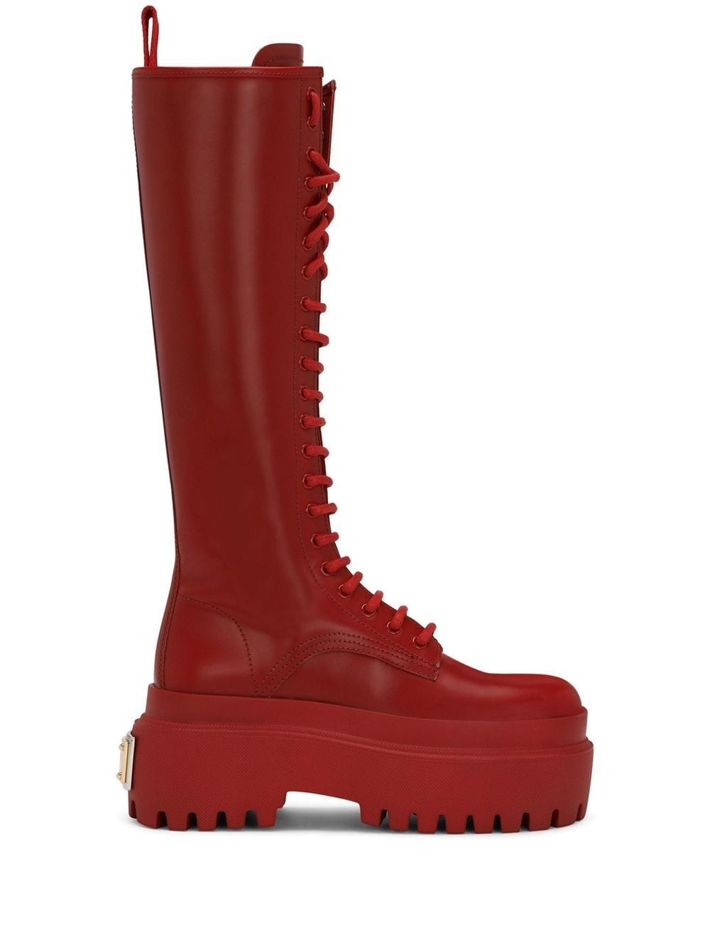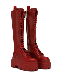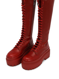 lace-up knee-high leather boots Highlights - Cardinal red - Leather trim - Gold-tone logo plaque - Pull-tab at the heel - Front lace-up fastening - Branded insole - Side zip fastening - Round toe - Platform sole - Knee-length Made in Italy Composition Leather 100%