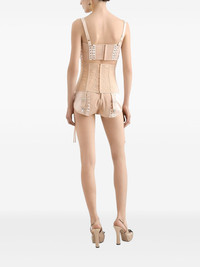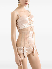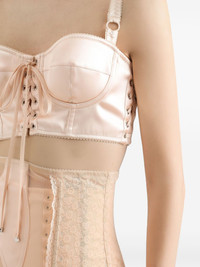 lace-up satin corset Highlights - Light pink - Front lace-up fastening - Rear hook fastening - Adjustable shoulder strap - Moulded cup Made in Italy Composition Outer: Polyester 50%, Polyamide 40%, Spandex/Elastane 10% Lining: Cotton 50%, Silk 45%, Spandex/Elastane 5%