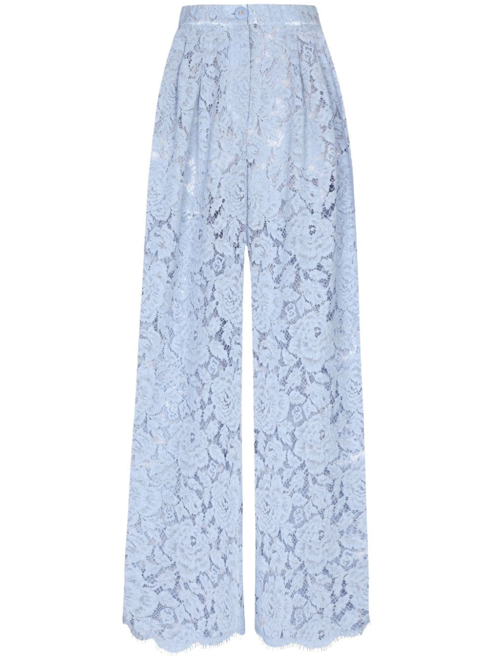 DNA lace wide-leg trousers Highlights - Light blue - Silk-cotton blend - High-rise - Floral-lace detailing - Wide leg - Button fastening - Concealed front zip fastening Made in Italy Composition Lining: Silk 91%, Spandex/Elastane 9% Outer: Viscose 41%, Cotton 35%, Polyamide 24%