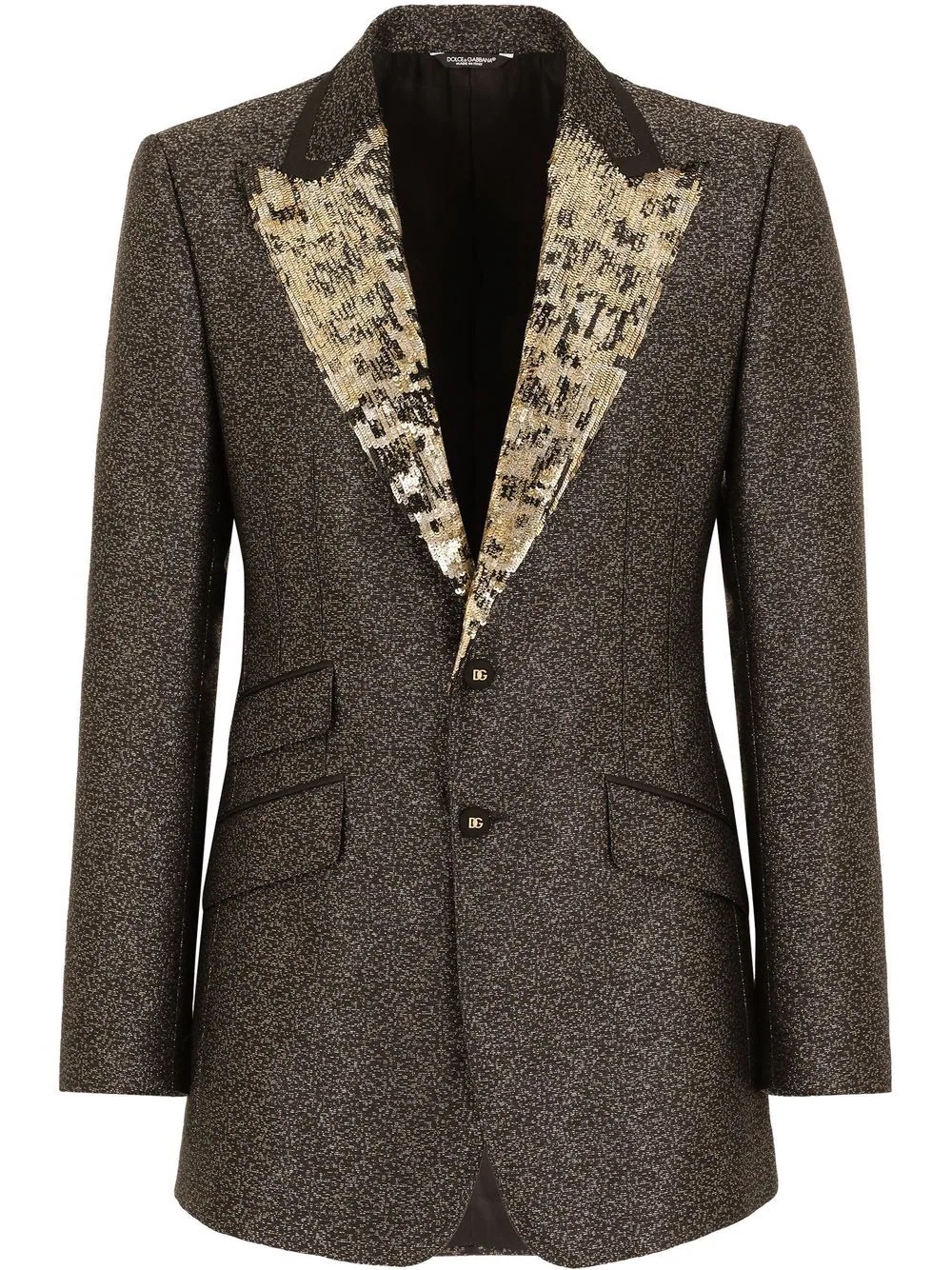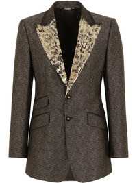 lame jacquard single-breasted blazer Highlights - Brown/multicolour - Silk blend - Lame effect - Patterned jacquard - Peak lapels - Front button fastening - Front flap pockets - Long sleeves - Buttoned cuffs - Straight hem Made in Italy Composition Outer: Silk 77%, Polyester 14%, Polyester film fiber 9% Lining: Rayon 100%