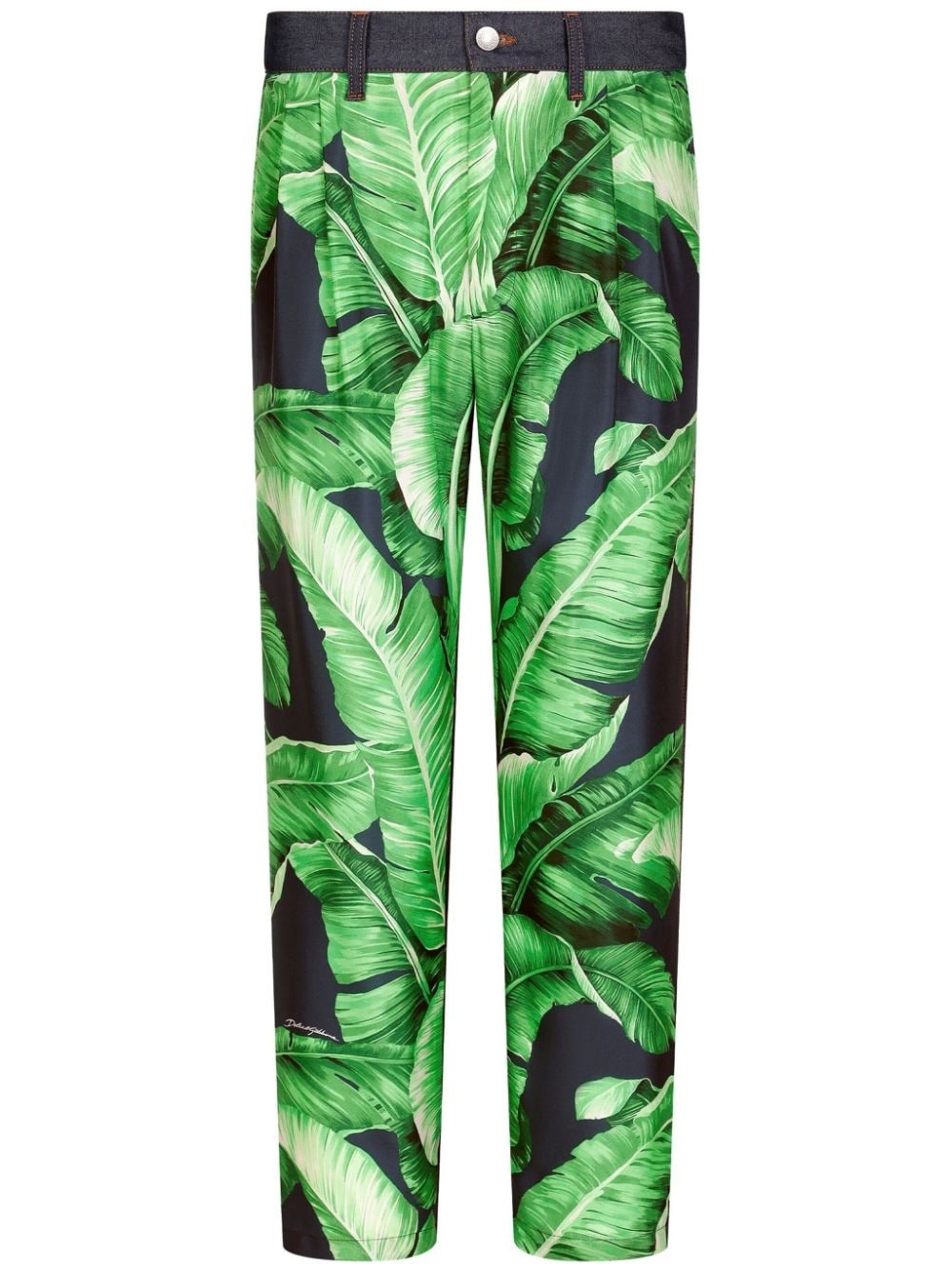leaf-print mid-rise straight jeans Highlights - Blue/green - Silk-cotton blend - Leaf print - Gold-tone logo plaque - Straight leg - Belt loops - Concealed fly and button fastening - Classic five pockets Made in Italy Composition Silk 70%, Cotton 28%, Spandex/Elastane 2% Washing instructions Read Manufacturer Guidelines