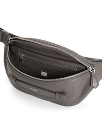 leather belt bag Highlights - Grey - Front zip fastening - Adjustable waist strap - Internal zip-fastening pocket - Front handle Made in Italy Composition Outer: Lambskin 94%, CALFSKIN 6% Lining: Lambskin 100% SIZE & FIT Measurement DEPTH 2.75 in(7 cm) HEIGHT 6.29 in(16 cm) WIDTH 15.74 in(40 cm)