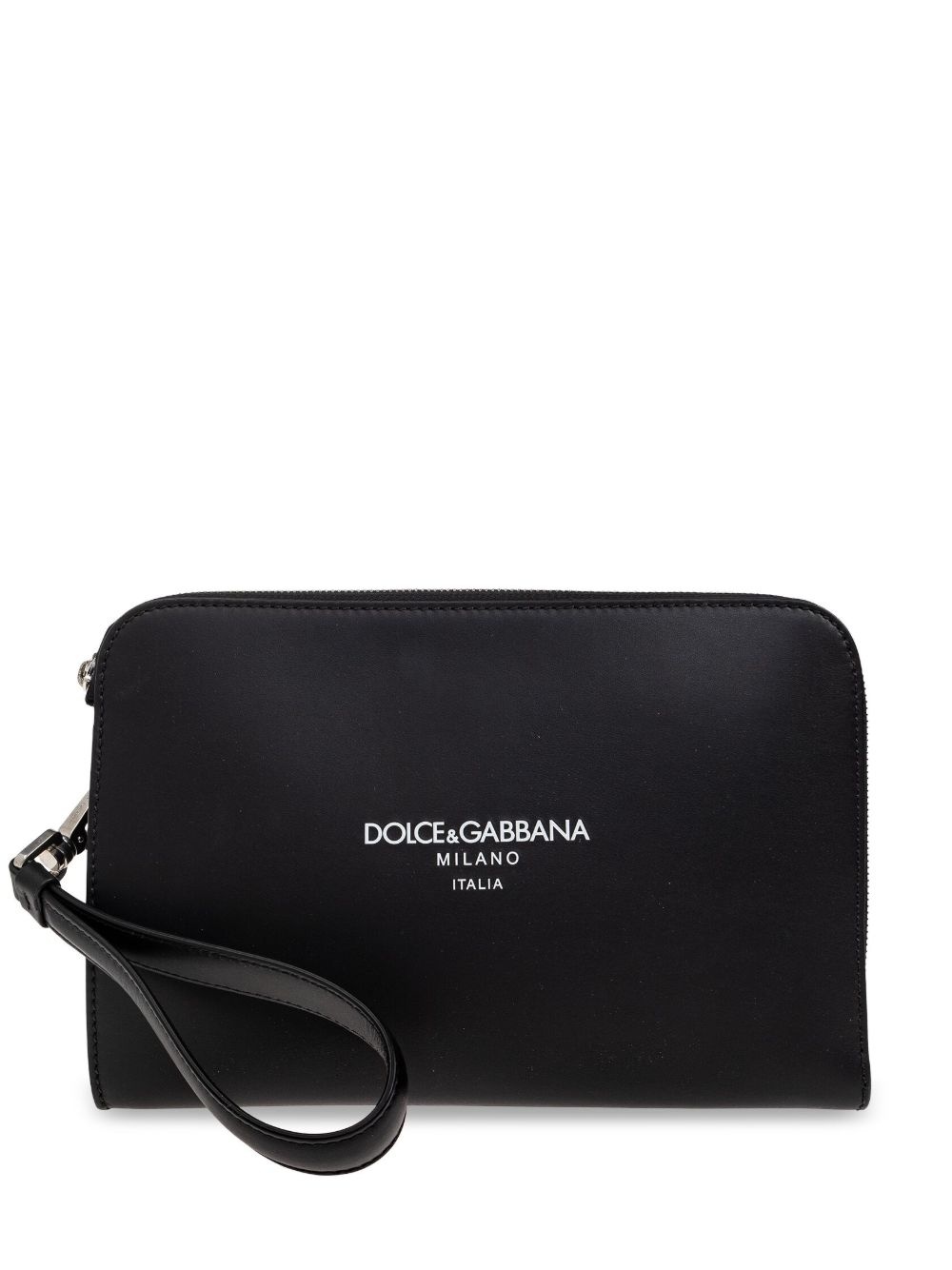 leather clutch bag Highlights - Black - All-around zip fastening - Main compartment - Logo print to the front Made in Italy Composition Outer: Calf Leather 100%