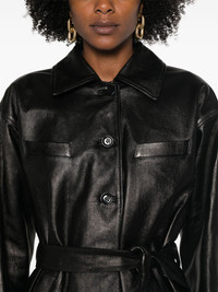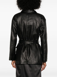 leather jacket Highlights - Black - Lambskin - Smooth grain - Front button fastening - Spread collar - Drop shoulder - Long sleeves - Belt loops - Detachable waist belt - Three front welt pockets - Quilted lining - Straight hem Made in Italy Composition Lining: Polyester 100% Outer: Lamb Skin 100% SIZE & FIT Model measurements Height 5 ft 11 in(1.8 m) Bust/Chest 32.67 in(83 cm) Hips 35.82 in(91 cm) Waist 25.98 in(66 cm) FittingInformation Designed to be unstructured, offering a loose fit throughout The tie fastening gives an adaptable and personalised fit Firm leather offering little flexibility to maintain its durability and sturdiness
