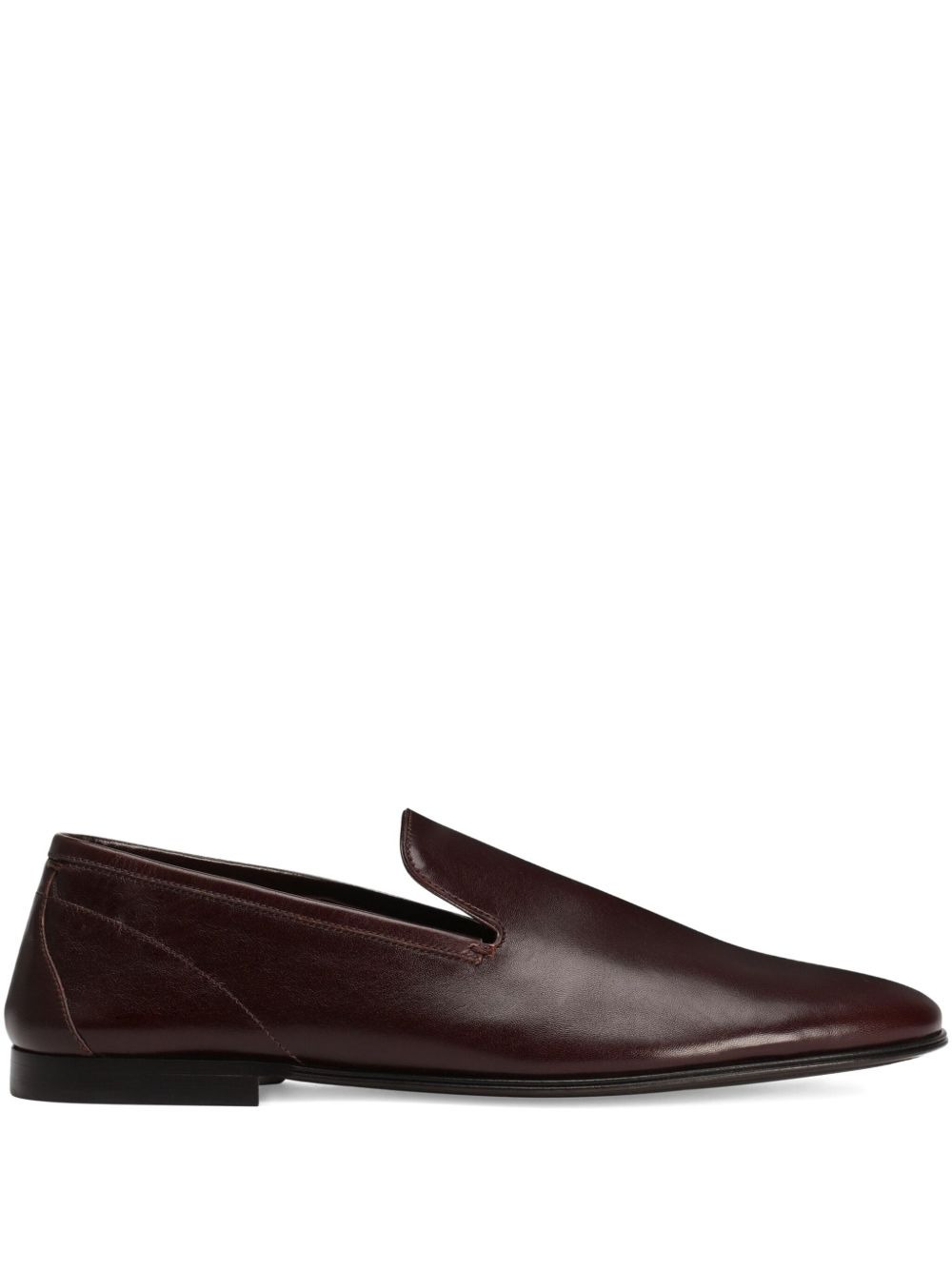 leather loafers Highlights - Burgundy - Smooth finish - Slip-on design - Almond-shaped toe - Low stacked heel - Stitching details Made in Italy Composition Lining: Goat Skin 95%, Viscose 3%, Silk 2% Outer: Goat Skin 100% Sole: Calf Leather 100%