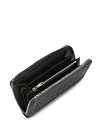 leather long wallet Highlights - Dark green - All-around zip fastening - Logo stamp to the front - Internal card slots Made in Italy Composition Lining: CALFSKIN 90%, Viscose 10% Outer: CALFSKIN 100% SIZE & FIT Measurement DEPTH 0.98 in(2.5 cm) LENGTH 7.28 in(18.5 cm) WIDTH 3.93 in(10 cm)