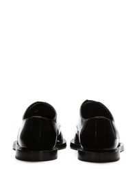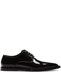 leather pointed derby shoes Assumedly bold, these derby shoes by Dolce & Gabbana continue the label's penchant for pointed silhouettes. The patent leather lends a timeless feel, while the oversize sole emphasises the pungent shape. Highlights - Black - Calf leather - Patent finish - Front lace-up fastening - Pointed toe - Branded insole - Flat leather sole Made in Italy Composition Sole: Calf Leather 100% Lining: Goat Skin 86%, Calf Leather 14% Outer: Patent Leather 100%