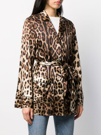 leopard-print belted pajama shirt