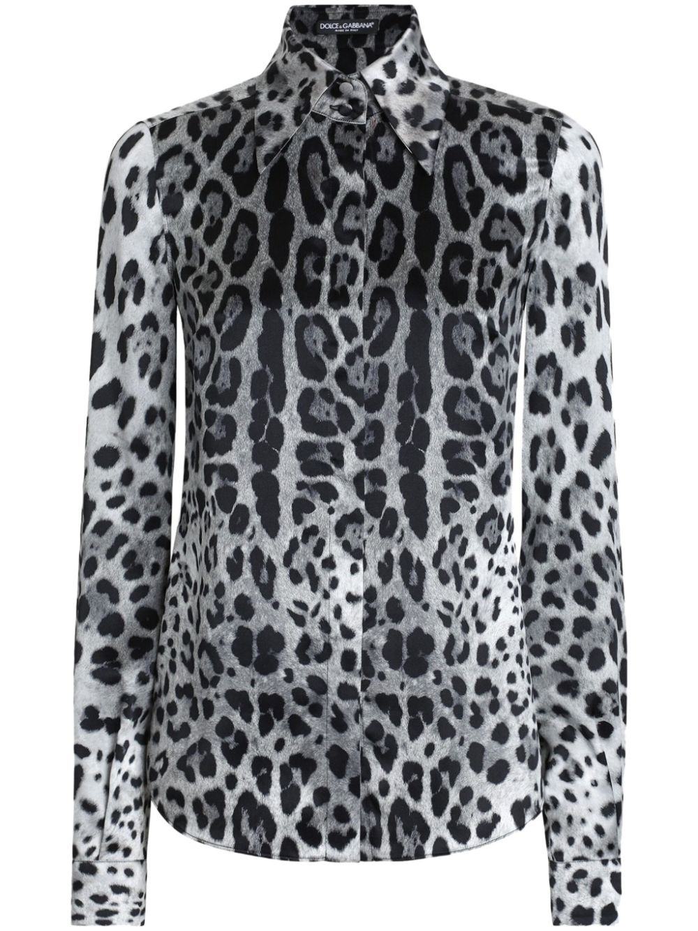 leopard-print blouse Highlights - Black/grey - Silk - Leopard print - Concealed front button fastening - Oversized pointed collar - Long sleeves with buttoned cuffs - Curved hem Made in Italy Composition Silk 100%
