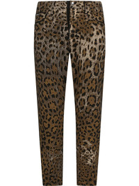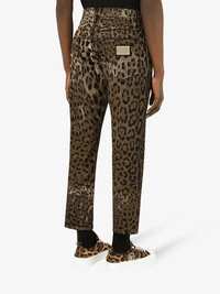 leopard-print cropped trousers The iconic leopard print - a symbol of Dolce & Gabbana's Italian exuberance - returned for the label's AW21 collection. Seen here, printed all over this pair of cropped trousers, it adds a refined yet fun twist to an everyday staple. Highlights - Brown/black - Cotton - All-over leopard print - Logo patch to the rear - Cropped leg - Front button and zip fastening - Classic five pockets Made in Italy Composition Cotton 100%