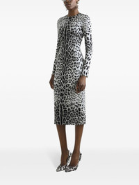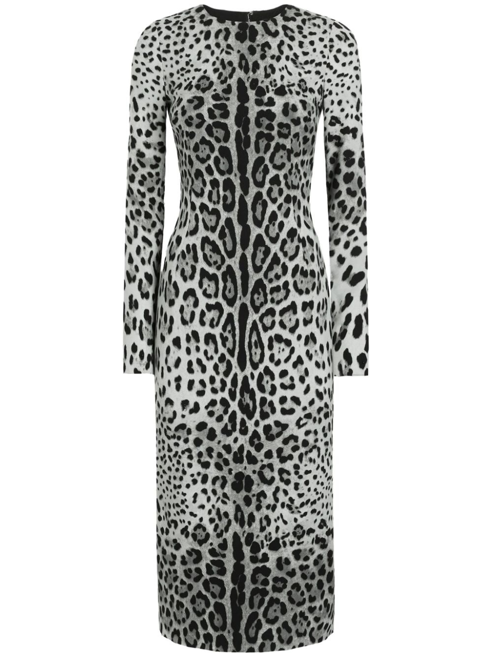 leopard-print dress Highlights - White/black - All-over leopard print - Concealed rear zip fastening - Round neck - Long sleeves - Rear slit - Mid-length Made in Italy Composition Lining: Silk 91%, Spandex/Elastane 9% Outer: Silk 95%, Spandex/Elastane 5%