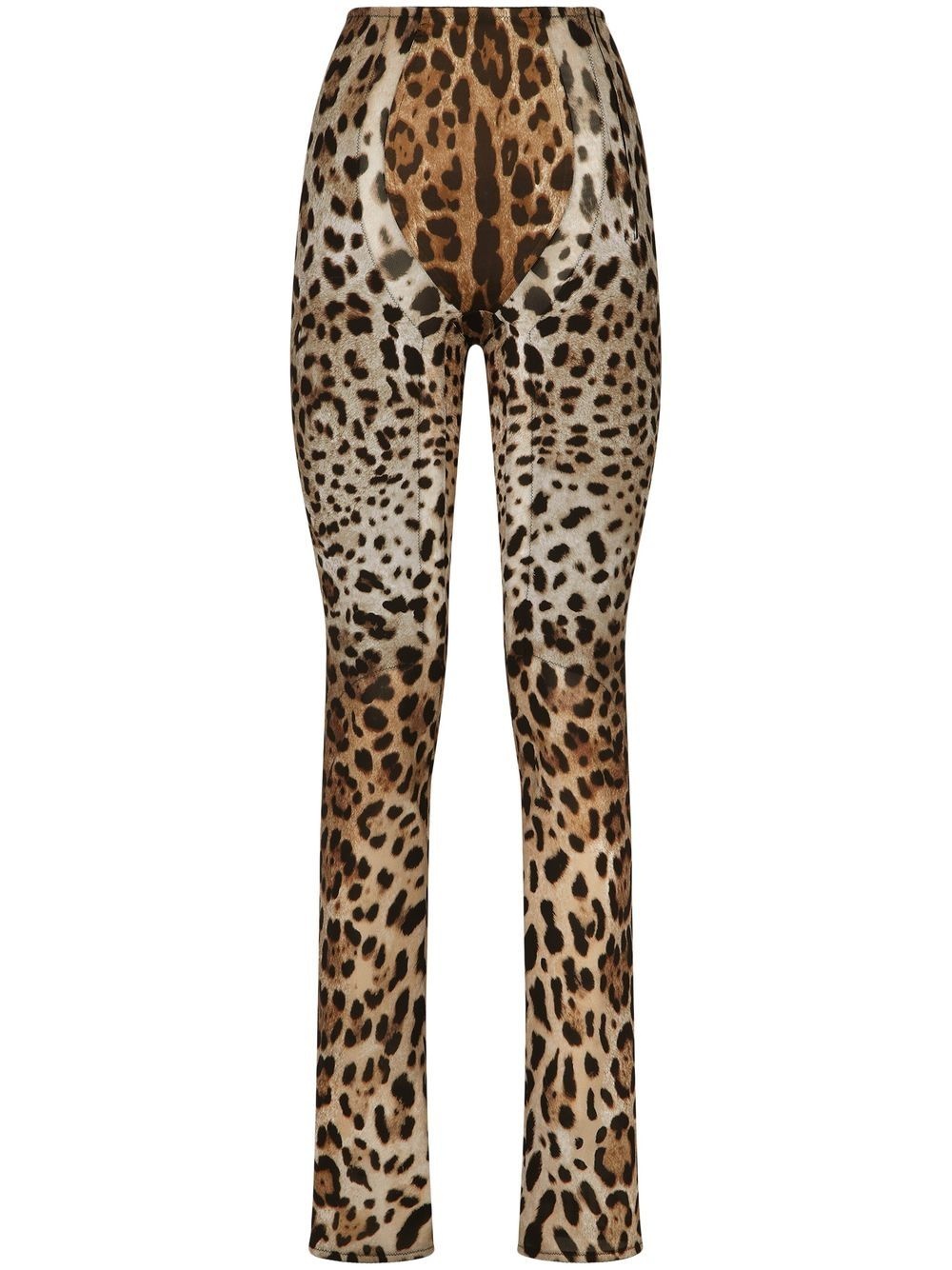 KIM DOLCE&GABBANA leopard-print flared trousers Highlights - Brown/multicolour - Silk blend - All-over leopard print - High waist - Elasticated waistband - Flared design Made in Italy Composition Nylon 75%, Elastane 17%, Silk 8%