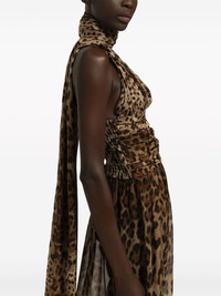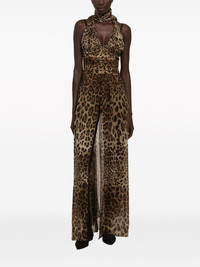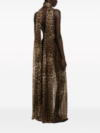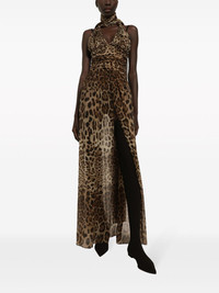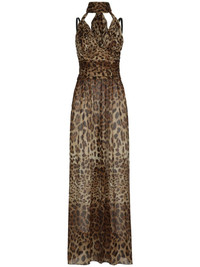 leopard-print halterneck silk gown Highlights - Brown/black - Silk - All-over leopard print - Halterneck tie fastening - V-neck - Sleeveless - Smocked panel - Front slit - Floor-length - Draped detailing Made in Italy Composition Silk 100% SIZE & FIT Measurement HIPS 33.85 in(86 cm) LENGTH 65.35 in(166 cm) WAIST 25.98 in(66 cm)
