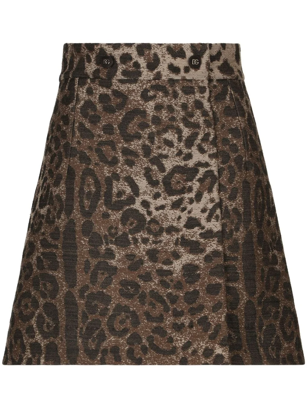 leopard-print high-waisted miniskirt Highlights - Brown - Virgin wool blend - All-over leopard print - High waist - Straight hem - Logo-embossed buttons - Thigh-length Made in Italy Composition Outer: Virgin Wool 99%, Nylon 1% Lining: Polyester 97%, Elastane 3% Washing instructions Read Manufacturer Guidelines