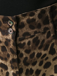 leopard-print drill shorts Like a leopard can't change its spots, you can't change your obsession with Dolce & Gabbana. Take these leopard print high-waisted shorts for a walk on the wild side. Roaring! Highlights - Beige/black - Stretch cotton - Leopard print - High waisted - Front button placket - Belt loops - Two side slit pockets - Two rear welt pockets Made in Italy Composition Cotton 95%, Spandex/Elastane 5% SIZE & FIT Model measurements Height 5 ft 10 in(1.78 m) Bust/Chest 33.07 in(84 cm) Hips 35.82 in(91 cm) Waist 25.98 in(66 cm) FittingInformation This piece fits true to size. We recommend you get your regular size Cut for a slim fit Made with a lightweight stretch fabric Washing instructions Dry Clean Only