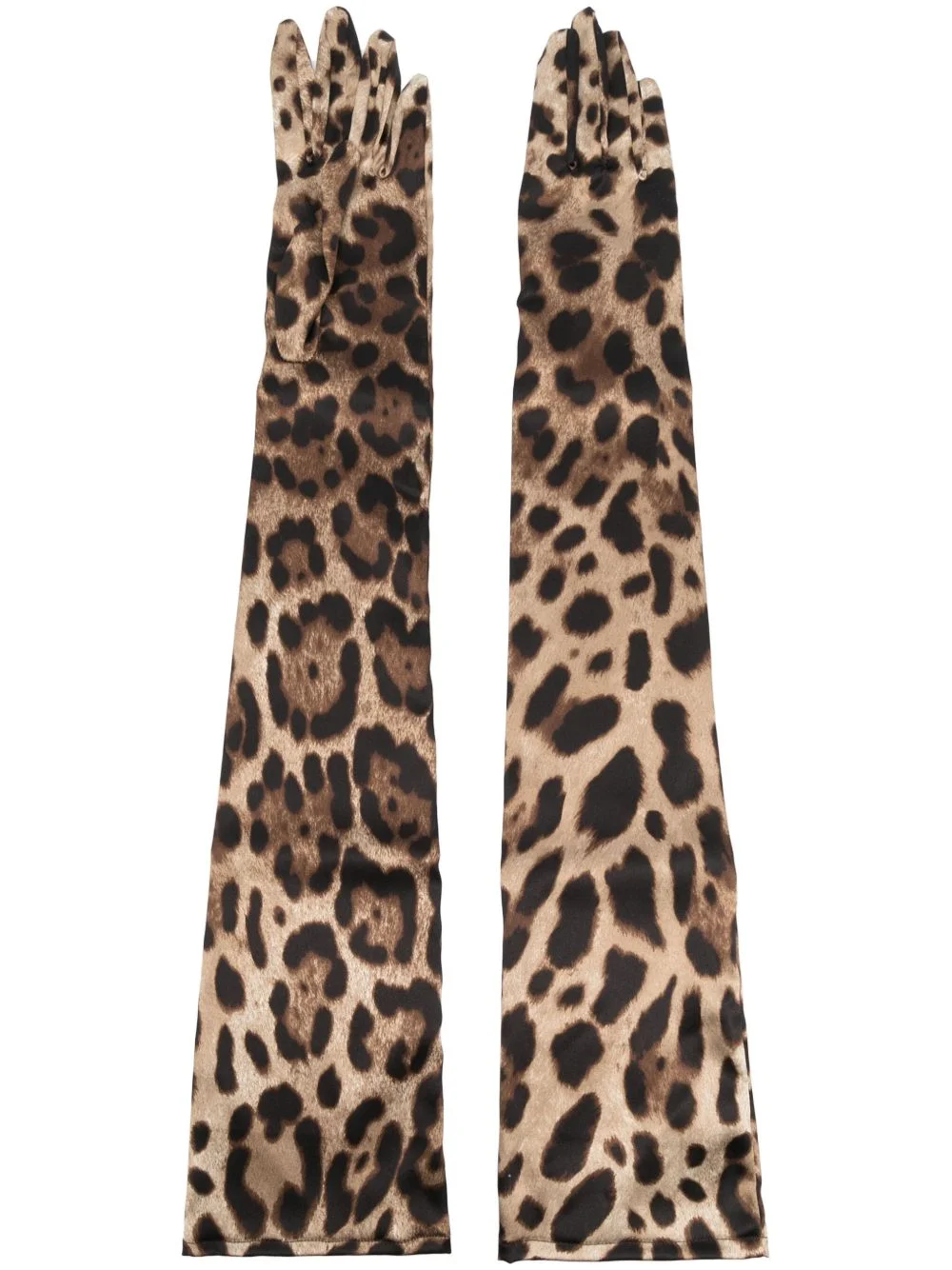 Long leopard-print stretch satin gloves