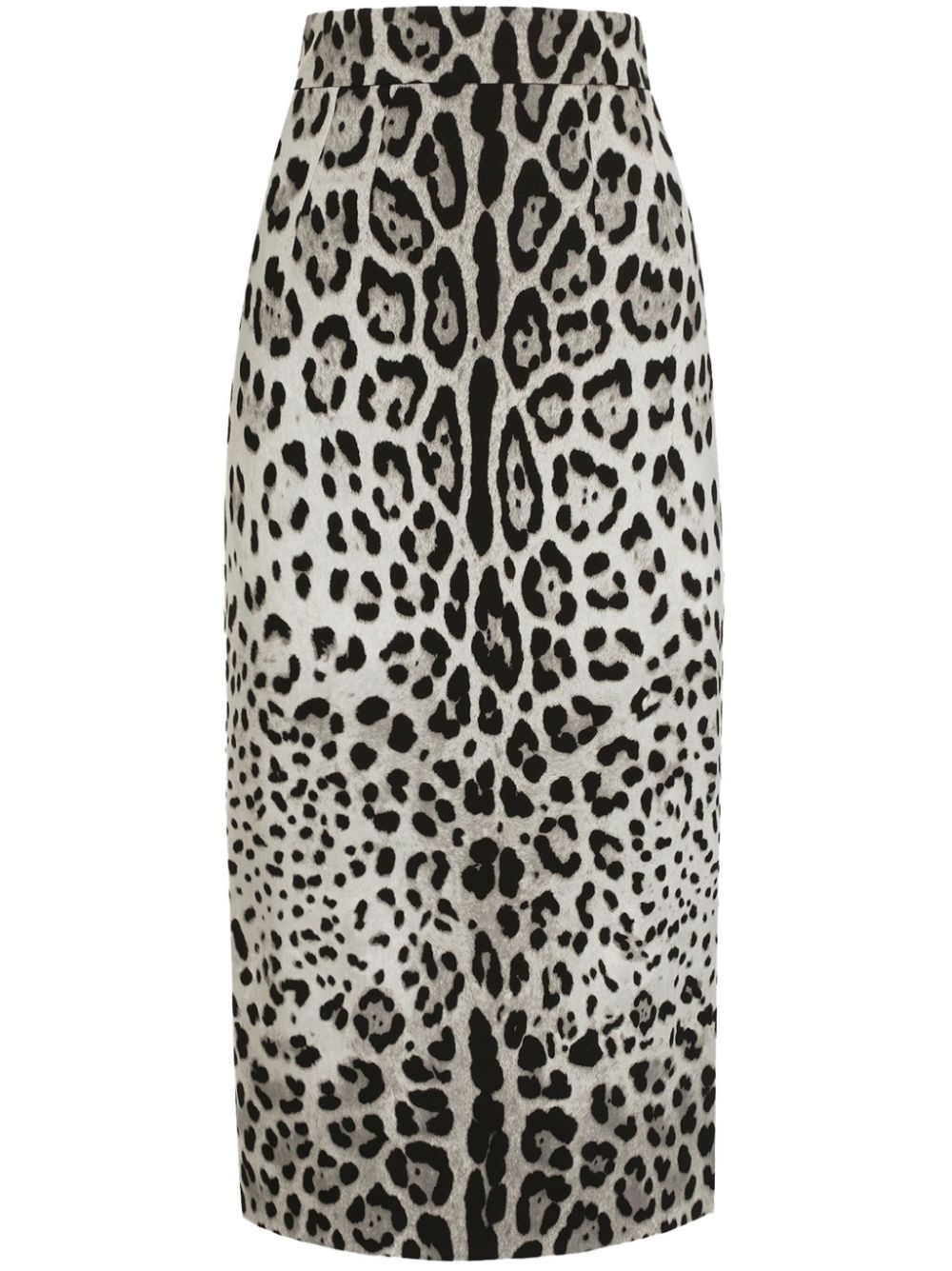 leopard-print skirt Highlights - White/black - All-over leopard print - High-waisted - Pencil silhouette - Rear slit - Mid-length Made in Italy Composition Outer: Silk 95%, Spandex/Elastane 5% Lining: Silk 91%, Spandex/Elastane 9%