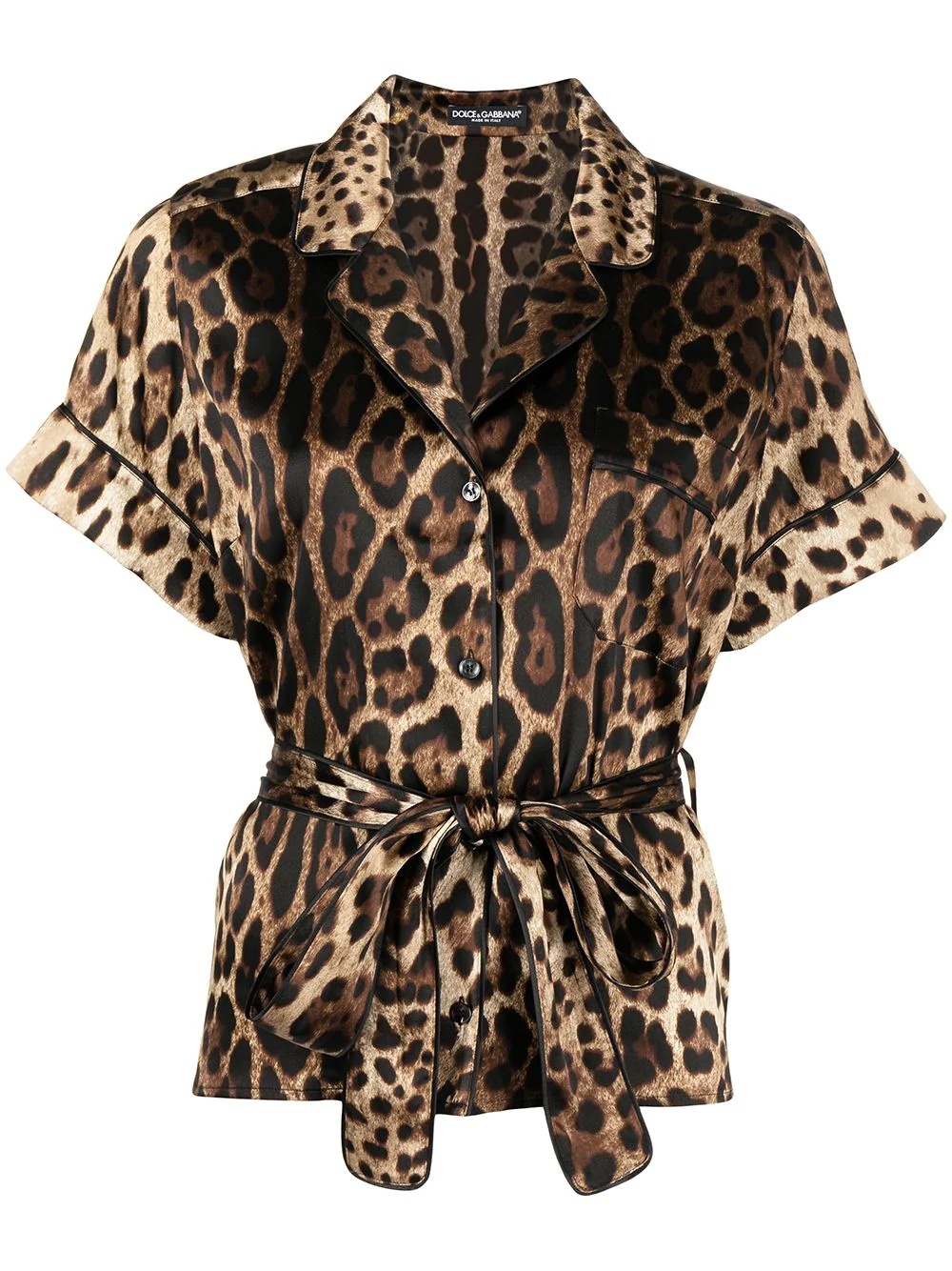 leopard-print belted silk shirt Highlights - Brown/black - Silk-blend - Stretch-silk - All-over leopard print - Camp collar - Front button fastening - Chest patch pocket - Short sleeves - Turn-up cuffs - Tied waist Made in Italy Composition Silk 93%, Spandex/Elastane 7% SIZE & FIT Model measurements Height 5 ft 11 in(1.8 m) Bust/Chest 28.34 in(72 cm) Hips 35.43 in(90 cm) Waist 23.62 in(60 cm) FittingInformation This piece fits true to size. We recommend you get your regular size Cut for a loose fit. Comes with an adjustable belt for a flexible fit at the waist Made with a lightweight stretch fabric Washing instructions Dry Clean Only