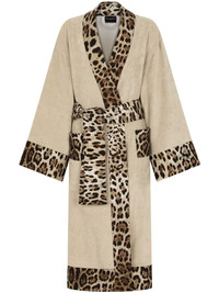 leopard-print trim belted bathrobe