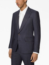 Linen Sicilia-fit jacket From Dolce & Gabbana's 'Corallo' collection, which pays tribute to the sea with breathable fabrics and timeless silhouettes, this blazer is cut from deep blue linen and tailored with classic features such as peak lapels while maintaining the brand's sleek 'Sicilia' slim-fit. Highlights - Navy blue - Linen/flax - Peak lapels - Front button fastening - Long sleeves - Chest welt pocket - Two front flap pockets Made in Italy Composition Linen/Flax 100%