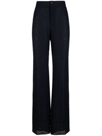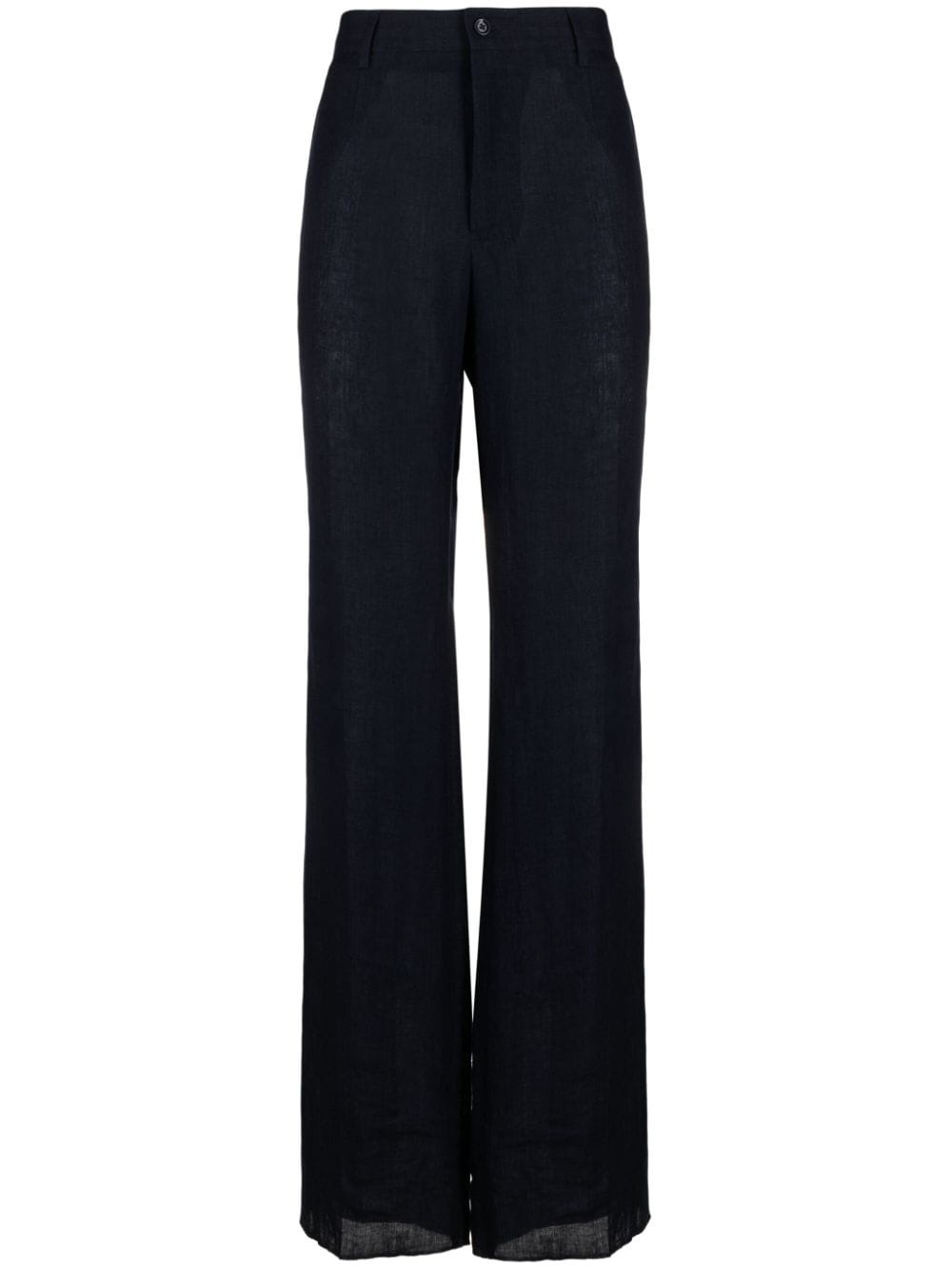 linen tailored wide-leg trousers Highlights - Navy blue - Linen/flax - Pressed crease - Belt loops - Front button and zip fastening - Wide leg - Slight flare - Two side slit pockets - Two rear button-fastening pockets Made in Italy Composition Linen/Flax 100% SIZE & FIT Model measurements Height 6 ft 1 in(1.85 m) Bust/Chest 38.58 in(98 cm) Hips 37 in(94 cm) Waist 30.31 in(77 cm) FittingInformation Designed for a straight-leg, allowing for an unrestricted and comfortable fit over the leg Made from a lightweight non-stretch fabric This piece fits true to size – take your usual size Washing instructions Dry Clean Only