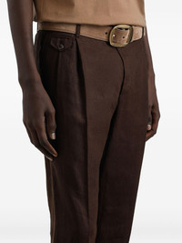 linen trousers Highlights - Chocolate brown - Concealed fly and button fastening - Two side slit pockets - Side flap pocket - Two rear button-fastening pockets Made in Italy Composition Linen/Flax 100% Washing instructions Read Manufacturer Guidelines