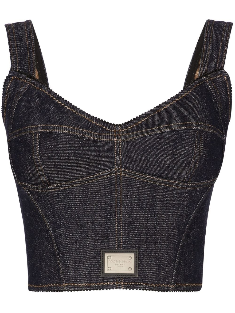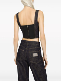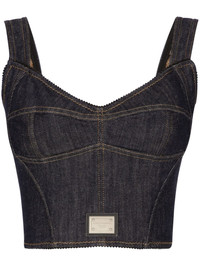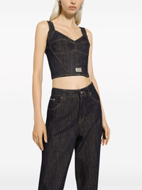 logo-applique cotton-blend top Highlights - Navy blue - Cotton blend - Stretch-design - Contrast stitching - Applique logo - Sweetheart neck - Rear zip fastening - Sleeveless - Straight hem - Cropped Made in Italy Composition Cotton 69%, Polyamide 25%, Elastane 6%