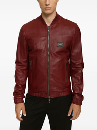 logo-applique leather jacket Highlights - Burgundy - Lambskin - Logo plaque - Stand-up collar - Long sleeves - Elasticated cuffs - Two-way zip fastening - Two side zip-fastening pockets - Elasticated hem - Full lining Made in Italy Composition Lining: Viscose 100% Outer: Lambskin 100%