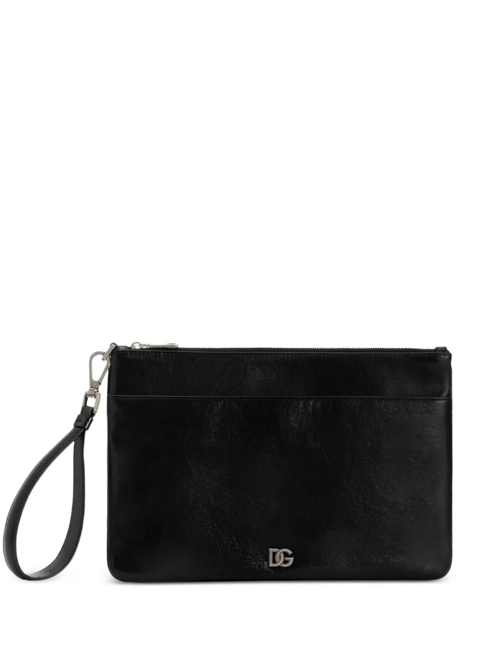 logo-applique clutch bag Highlights - Black - Front slip pocket - Applique logo - Wrist strap - Zip fastening - Silver-tone hardware Made in Italy Composition Outer: Calf Leather 100% Lining: Cotton 100% SIZE & FIT Measurement DEPTH 0.39 in(1 cm) HEIGHT 8.66 in(22 cm) WIDTH 12.67 in(32.2 cm)