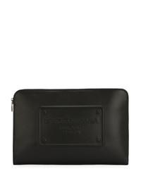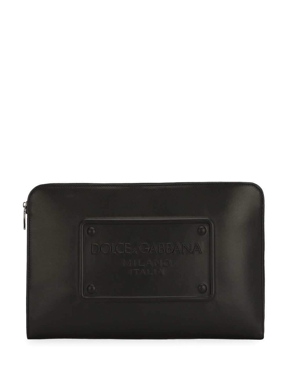 logo-debossed leather clutch bag Dolce & Gabbana adds a subtle branded touch to this leather clutch bag through the debossed logo detail that is applied to the front. Highlights - Black - Calf leather - Debossed logo to the front - All-around zip fastening - Main compartment - Loop handle Made in Italy Composition Outer: Calf Leather 100% Inner: Cotton 75%, Calf Leather 15%, Acrylic 10%