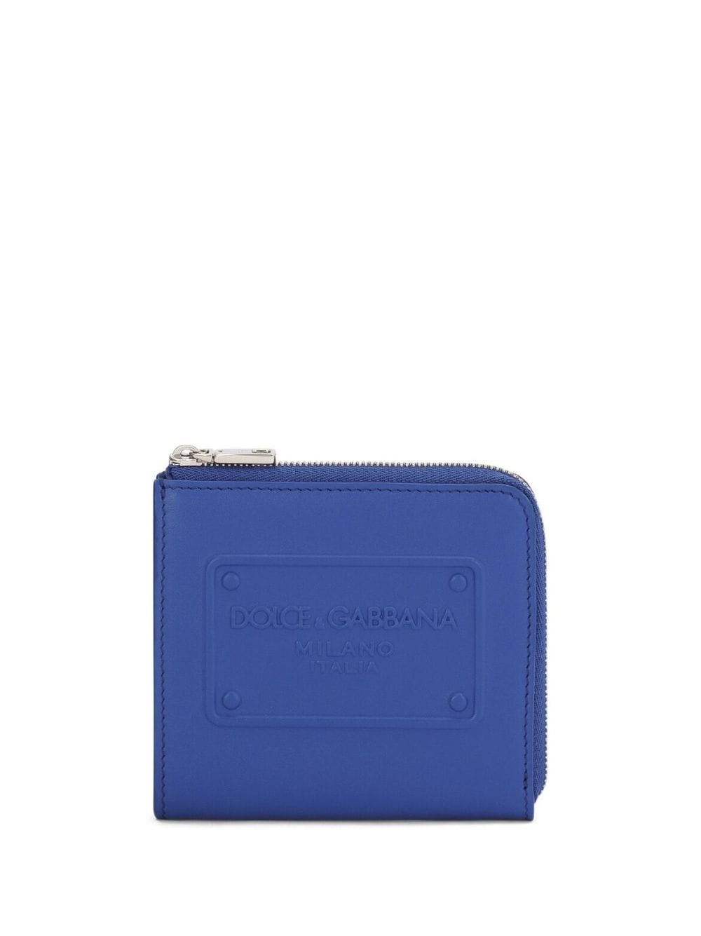 logo-debossed zip-around wallet Dolce & Gabbana adds a subtle branded touch to this electric blue zip-around wallet through the debossed logo detail that is applied to the front. Highlights - Electric blue - Calf leather - Debossed logo to the front - All-around zip fastening - Coin pocket - Internal card slots Made in Italy Composition Outer: Calf Leather 100% Inner: Calf Leather 90%, Rayon 10% SIZE & FIT Measurement DEPTH 0.39 in(1 cm) LENGTH 4.33 in(11 cm) WIDTH 3.93 in(10 cm)