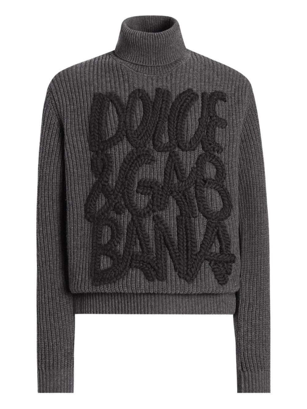 logo-detail ribbed turtleneck sweater Highlights - Iron grey - Ribbed knit - Turtleneck - Long sleeves - Applique logo - Wool Made in Italy Composition Virgin Wool 100% Washing instructions Read Manufacturer Guidelines