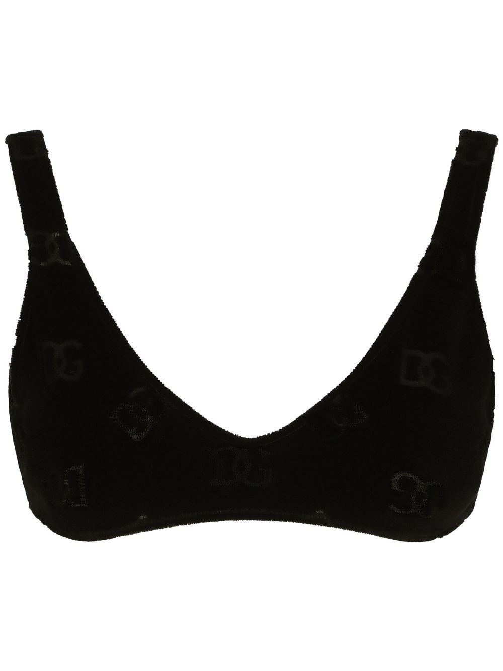 DG-logo flocked bralette top Highlights - Jet black - Cotton - Velvet - Flocked logo - Thin shoulder straps - Scoop neck - Scoop back - Cropped - Bralette style Made in Italy Composition Cotton 100%