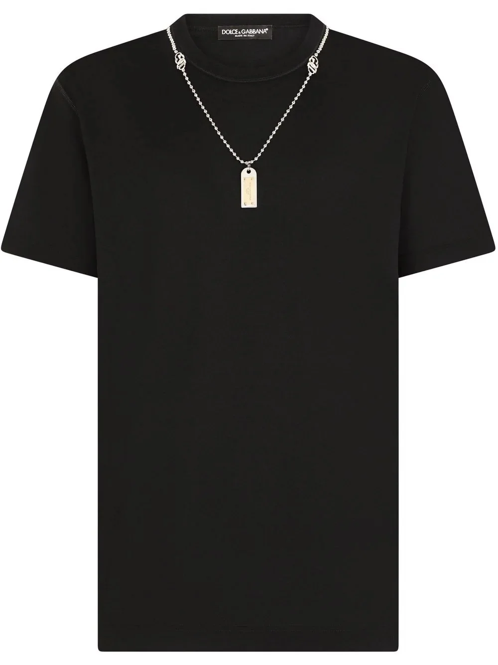 logo dog-tag T-shirt black cotton logo plaque silver-tone hardware dog tag chain round neck short sleeves Made in Italy Composition Cotton 100%