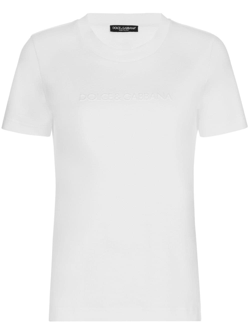 logo-embossed cotton T-shirt Highlights - Optical white - Cotton - Embossed logo to the front - Round neck - Short sleeves - Straight hem Made in Italy Composition Cotton 100% Washing instructions Read Manufacturer Guidelines