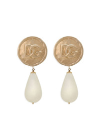 logo-embossed drop earrings Highlights - Gold-tone/off-white - Embossed logo to the front - Bead embellishment - Clasp fastening - Drop design - These earrings come as a pair. Made in Italy