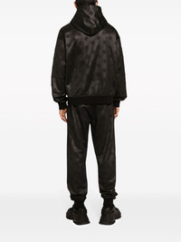 logo-embossed jersey hoodie Presented in black, Dolce & Gabbana's hoodie is crafted from cotton-blend jersey. The brand's moniker appears embossed all over the piece, rendering it a branded look. Highlights - Black - Cotton blend - Jersey texture - All-over embossed logo print - Drawstring hood - Drop shoulder - Long sleeves - Front pouch pocket - Ribbed cuffs and hem Made in Italy Composition Polyester 50%, Cotton 50%