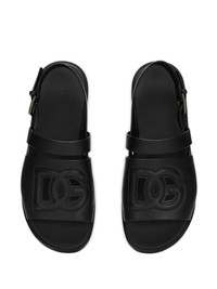 logo-embossed leather slides Highlights - Black - Calf leather - Embossed logo to the front - Buckle-fastening ankle strap - Open toe - Branded insole - Flat rubber sole Made in Italy Composition Lining: Lamb Skin 100% Sole: Calf Leather 100% Outer: Calf Leather 100%