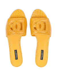 DG Millennials leather sandals You can always depend on Dolce & Gabbana to fulfil your footwear needs. With an open toe and backless design, these logo-embossed mule sandals are the ultimate summer staple. Your warm-weather wardrobe just got an upgrade. Highlights - Yellow - Crocodile leather - Cut-out detailing - Logo-embossed strap - Open toe - Almond toe - Slip-on style - Branded insole - Flat leather sole - This item comes from our partner boutiques in a variety of countries and cannot be shipped outside its region (either us, uae, or the eu & uk). please check the country of origin in the shipping & free returns tab or your shopping bag to make sure it can be delivered to your location. Made in Italy Composition Outer: Crocodile Leather 100% Lining: Leather 100% Sole: Leather 100%