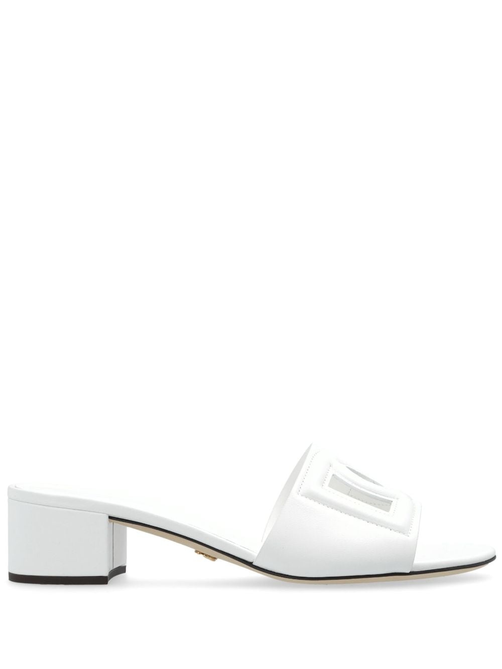 DNA 40mm DG MIllennials sandals Highlights - White - Calf leather - Embossed logo to the front - Slip-on style - Open toe - Backless - Mid block heel - Branded insole Made in Italy Composition Outer: Calf Leather 100% Sole: Calf Leather 100% Lining: Calf Leather 100% SIZE & FIT Measurement HEEL 1.96 in(5 cm)