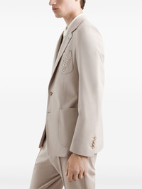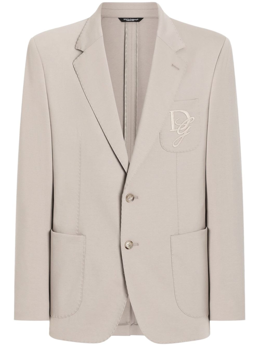 logo-embroidered blazer Highlights - Beige - Embroidered logo at the chest - Front button fastening - Notched lapels - Long sleeves - Buttoned cuffs - Chest patch pocket - Two front patch pockets - Central rear vent - Unlined - Straight hem Made in Italy Composition Outer: Cotton 52%, Polyamide 40%, Spandex/Elastane 8% Lining: Polyester 55%, Viscose 45%