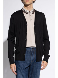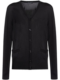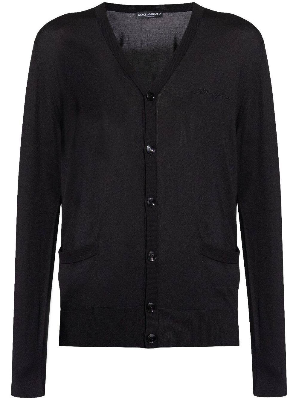 logo-embroidered cardigan Highlights - Black - Silk - Embroidered logo at the chest - V-neck - Long sleeves - Front button fastening - Two side welt pockets - Ribbed cuffs and hem Made in Italy Composition Silk 100%