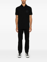 logo-embroidered cotton polo shirt Highlights - Black - Cotton - Pique weave - Embroidered logo at the chest - Front button placket - Polo collar - Short side slits - Short sleeves - Straight hem Made in Italy Composition Cotton 100%, PVC 77%, Polyamide 11%, Polyester 8%, Elastane 4% SIZE & FIT Model measurements Height 6 ft 2 in(1.87 m) Bust/Chest 38.18 in(97 cm) Hips 36.61 in(93 cm) Waist 29.13 in(74 cm) FittingInformation Designed for a slim fit, this polo shirt offers a comfortable fit that sits just away from the body Made from a midweight non-stretch fabric, this piece offers minimal elasticity when worn